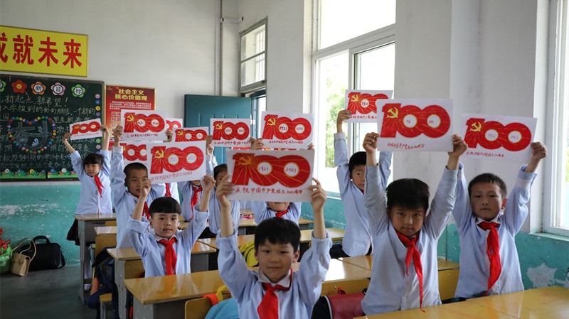 碧峰小学二年级学生甘锦妮、黄熠希分别讲述了红色经典《鸡毛信的故事》、《王二小》的故事并分享读后感想,全班师生还一起合唱了《歌唱二小放牛郎》 。随后,在图书馆志愿者的指导下,孩子们纷纷动手在画纸上描画庆祝建党100周年的样式,用画笔表达对党的爱!