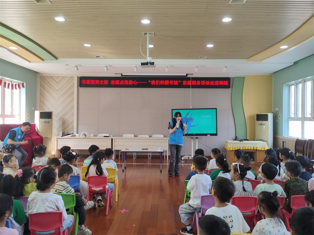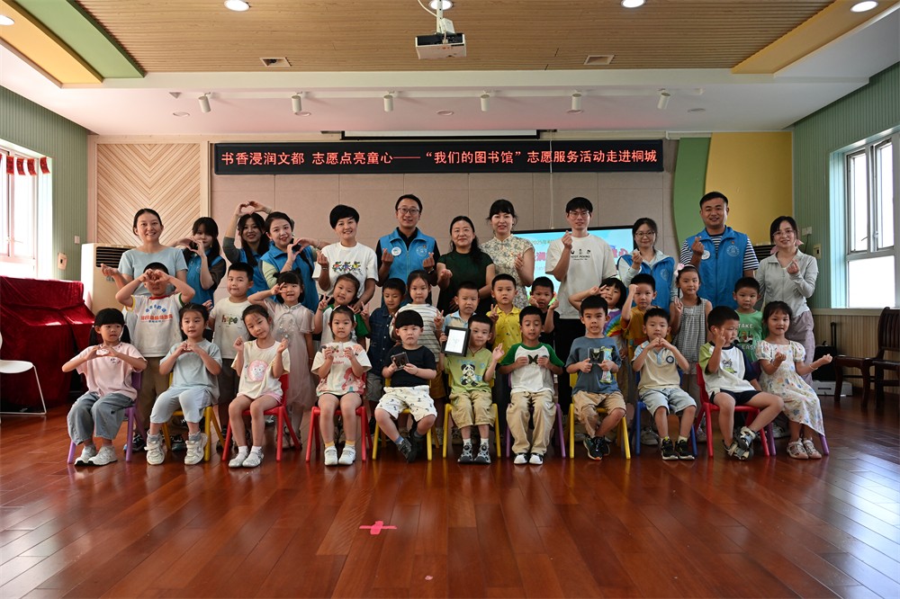 活动在桐城市实小幼儿园拉开帷幕,十余位安徽省图书馆青年党团员志愿者、桐城市图书馆志愿者为120名孩子送去了一场别开生面的阅读嘉年华。