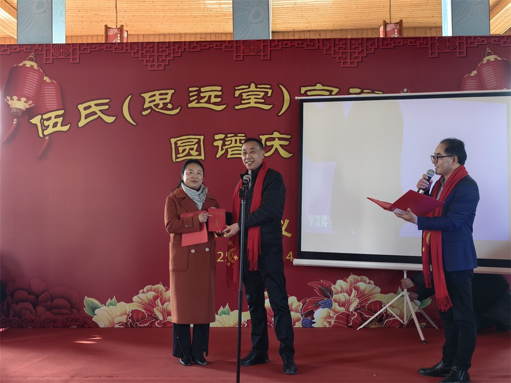 12月14日上午,伍氏(思远堂)宗谱六修圆谱庆典在枞阳义津举办,庆典仪式上,枞阳伍氏文化传播有限公司向桐城市图书馆捐赠《桐城含山伍氏思远堂宗谱》一套三十八卷四十七册,桐城市图书馆馆长吴苏琴接受捐赠并致辞,同时向捐赠者颁发捐赠证书。
