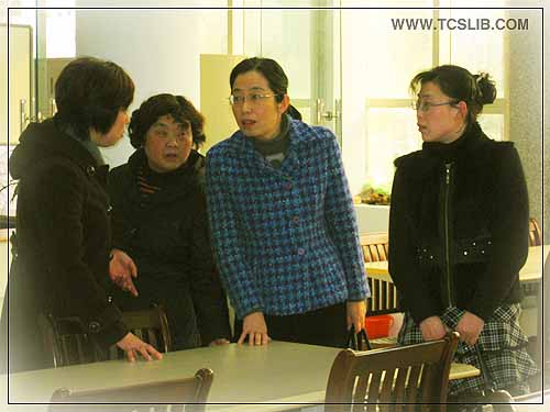 吴青馆长陪同贾莉馆长等客人在阅览室
