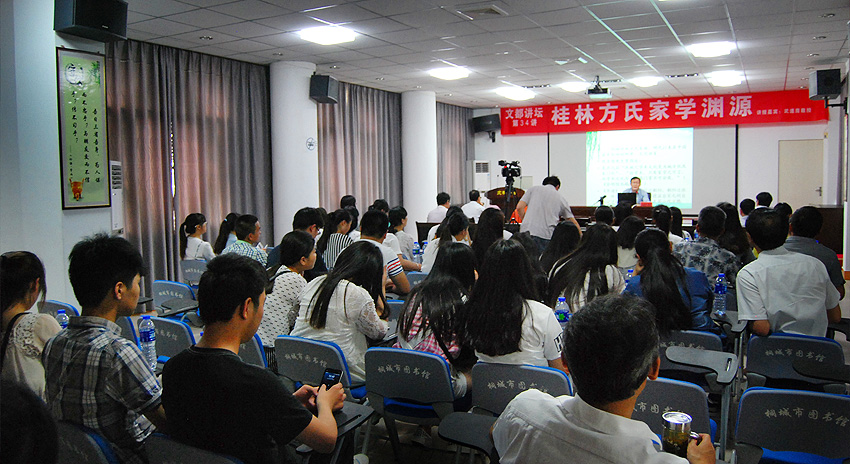 由桐城市文广新局主办,桐城市图书馆承办的,由武道房教授讲授的“文都讲坛”第三十四讲:“桂林方氏家学渊源”5月24日下午在市图书馆三楼多功能厅开讲。